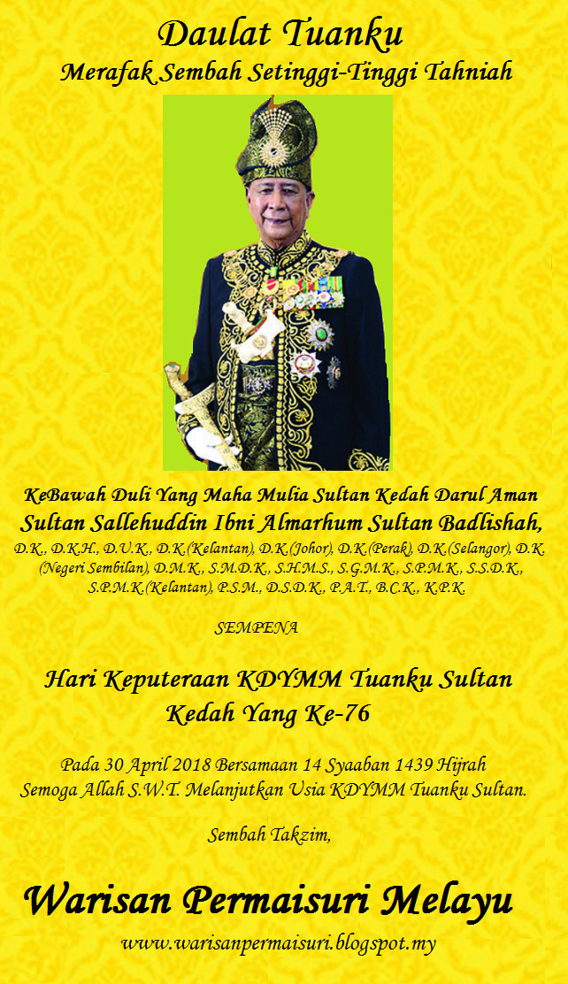 Penutupan Sementara Operasi Pusat Internet Kg Sungai Batu Hari Keputeraan Sultan Kedah Tahun 2020 from sgbatu.pjk.com.my 640 x 640 jpeg 317 кб. Johor, kedah, kelantan & terengganu. السلطان المعتصم بالله محب الدين توانكو الحاج عبدالحليم المعظم شاه ابن المرحوم السلطان بادلي شاه; Sambutan ulang tahun hari keputeraan sultan terengganu iaitu sultan mizan zainal abidin ibni almarhum sultan mahmud al muktaffi billah shah. Yang di pertuan agong dan raja permaisuri agong kesebelas. Cuti hari keputeraan kdymm sultan brunei. Listing the first sultan of kedah as sultan mudzafar shah i centuries before the partitioning of the abbasid caliphate into distinct sultanates and almost three centuries prior to the contradicting claims of the terengganu inscription stone. Berikut dikongsikan kalendar 2020 malaysia yang memaparkan tarikh penting meliputi tarikh cuti umum dan cuti sekolah untuk tahun 2020.