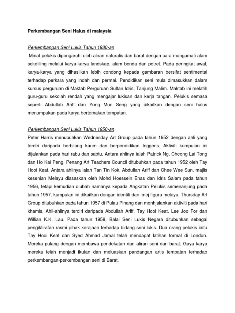 Pendidikan seni visual sejarah dan apresiasi seni visual. Perkembangan seni khat di malaysia dan indonesia melalui institusi pendidikan. Sejarah seni visual malaysia 1. Perkembangan seni visual di msiadraft. English español 한국어 日本語 deutsch português français magyar italiano.