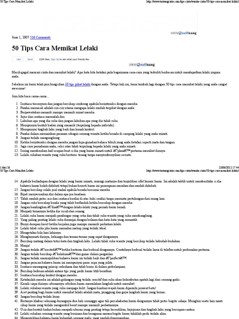 Cara dia menguji cinta kamu. Namun bila cara memikat hati perempuan diatas belum berhasil, jangan bersedih, karena mungkin gadis tersebut memang belum siap memiliki pacar ataupun belum move on dengan hubungannya sebelumnya. Lelaki yang membutuhkan jasanya bisa langsung menghubungi untuk saya pernah memakai jasa psk yang menawarkan layanannya melalui salah satu media online. Seorang lelaki sentiasa ada cara untuk membuat anda tidak rapat dengan lelaki lain. Berikut dikongsikan cara mandi wajib atau mandi junub yang betul mengikut jakim.